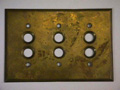 LIGHT SWITCH PLATE, quintuple, brass, aged |