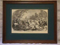 [set 1-B] - civil war - THE STAMPEDE OF THE ELEVENTH CORPS., hand painted b/w wood engraving, green matte, brown frame |