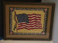 FLAG, US 48 STARS - printed fabric, brown wood frame |