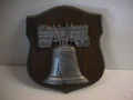 SHIELD, LIBERTY BELL, cast aluminum on wood |