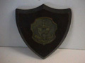 SHIELD - "...BEST WISHES ON YOUR RETIREMENT", metal on wood |