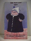 " THE OLD LADY SAYS... FIRE SAFETY AND FIRE PREVENTION.", old lady motif, white, blue & red vacuform |