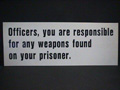 police - "OFFICERS YOU ARE RESPONSIBLE...PRISONER" - black on white plastic |