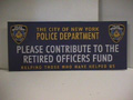 police - "THE CITY OF NEW YORK POLICE DEPARTMENT PLEASE CONTRIBUTE...." - yellow, black & white on cardboard |